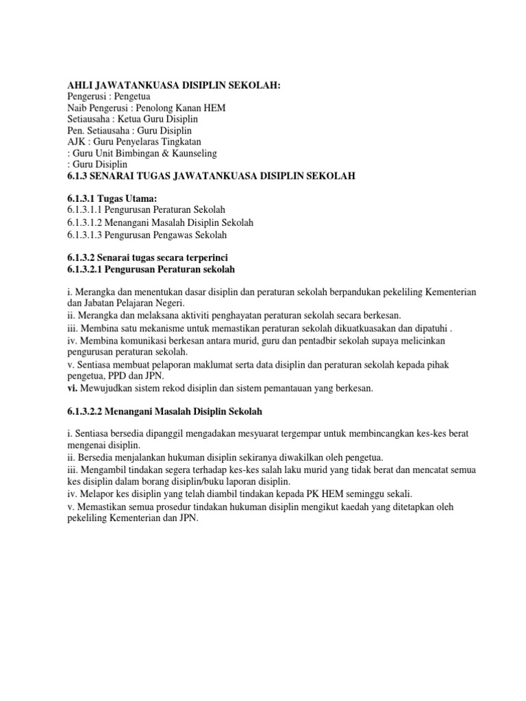 Ahli Jawatankuasa Disiplin Sekolah Pdf
